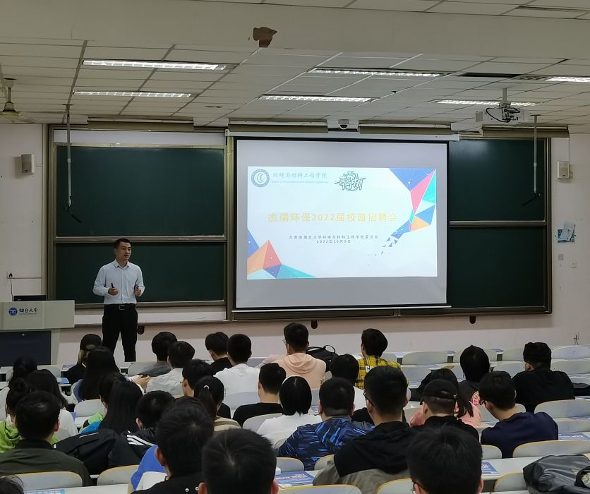 团委积极对接招聘单位,于10月9日下午3:00在综合楼108举办了杰瑞环保2022届校园招聘宣讲会,杰瑞环保公司人力资源经理宋宁军和公司人事部门相关老师参加了此次校园招聘。