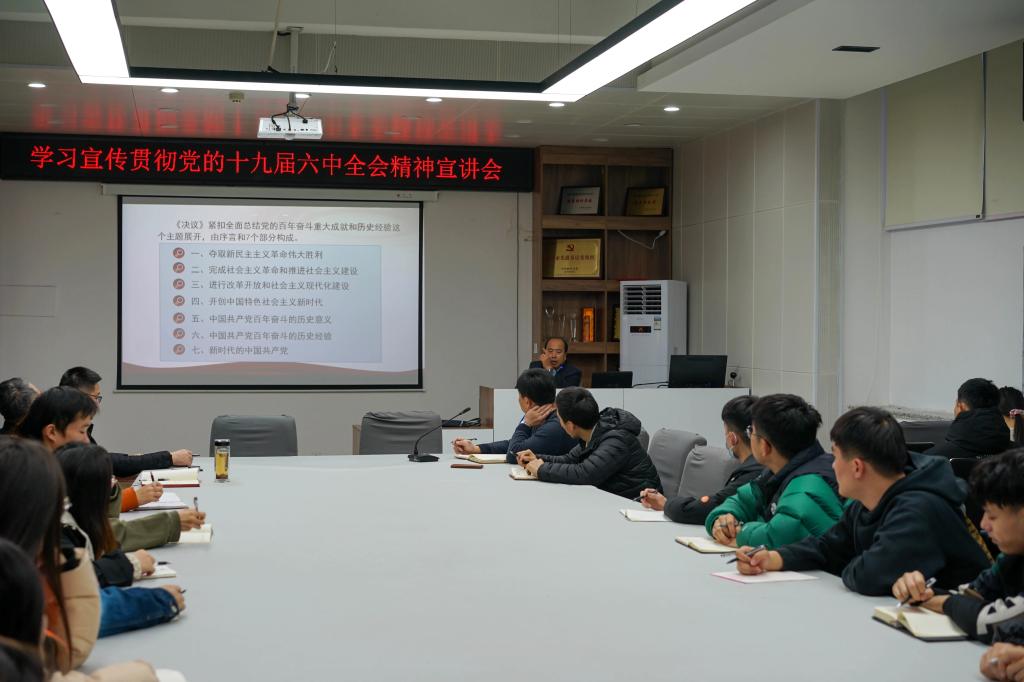 在学院337会议室召开会议,专题学习党的十九届六中全会精神。本次会议学院特别邀请了肉视频