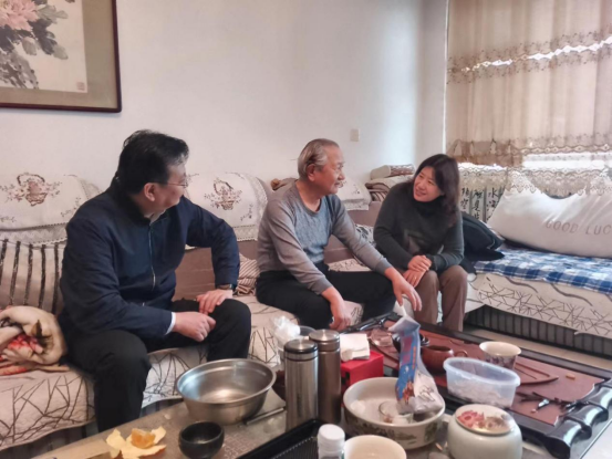 走访过程中,杨乃军与史永祥、陶维忠等老同志进行了深切交谈,详细询问他们的生活和身体情况,介绍了学院一年来各项事业发展取得的成果,并就2024年建院40周年举办系列庆祝活动听取老同志意见建议。杨乃军希望老同志们一如既往地支持学院发展,并祝福老同志身体健康,生活幸福,节日快乐。