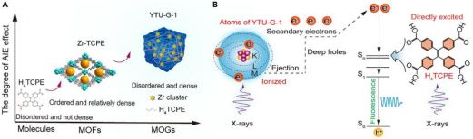 近期,Chem期刊(IF: 23.5)发表了我院刘伟教授课题组题为“Anchoring the AIEgen by Zr clusters in metal-organic gel for efficient X-ray detection and imaging”的研究论文,揭示了一例结构致密且刚性的金属-有机凝胶闪烁体的聚集诱导(AIE)辐射发光机理,展现了其用于高分辨X射线成像的巨大潜力。我院硕士研究生王小泽和教师汪遐为论文共同第一作者,学院教授刘伟为该论文的通讯作者。该研究得到了国家自然科学基金、山东省自然科学基金以及上海光源的支持。