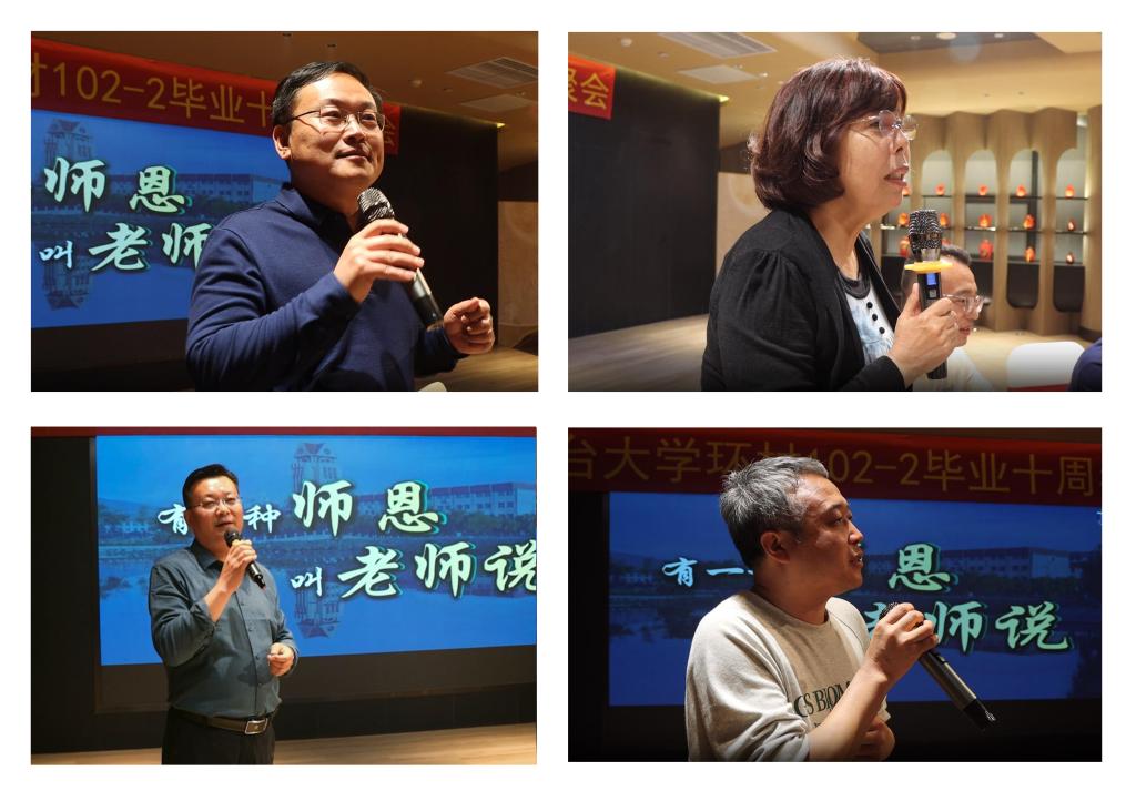 校友代表烟台玥远企业管理咨询有限公司总经理、环材102-2班班长贾洪杰深情回忆了大学生活的点点滴滴,以及毕业之后与母校、老师、校友之间的密切联系。祝愿母校发展蒸蒸日上,祝福老师幸福安康,祝愿同学和学弟学妹再创辉煌。