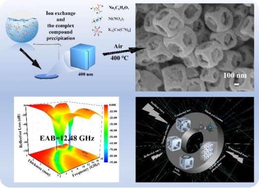 侯传信/杜伟教授团队在吸波材料研究领域取得新进展。相关研究成果以“Initiating binary metal oxides microcubes electromagnetic wave absorber toward ultrabroad absorption bandwidth through interfacial and defects modulation”为题,发表在高水平国产期刊《Nano Micro Letters》上(论文链接://doi.org/10.1007/s40820-023-01197-0,中国科学院一区,最新影响因子26.6)。本研究通过控优化钴酸镍/碳复合材料形貌,构建异质界面和缺陷以诱导多种极化持豫过程,最终达到超宽频的有效吸收带宽。该研究策略采用廉价节能和可规模化生产的工艺方法,显著提升了钴酸镍基吸波材料的性能,为相关研究提供了创新思路。