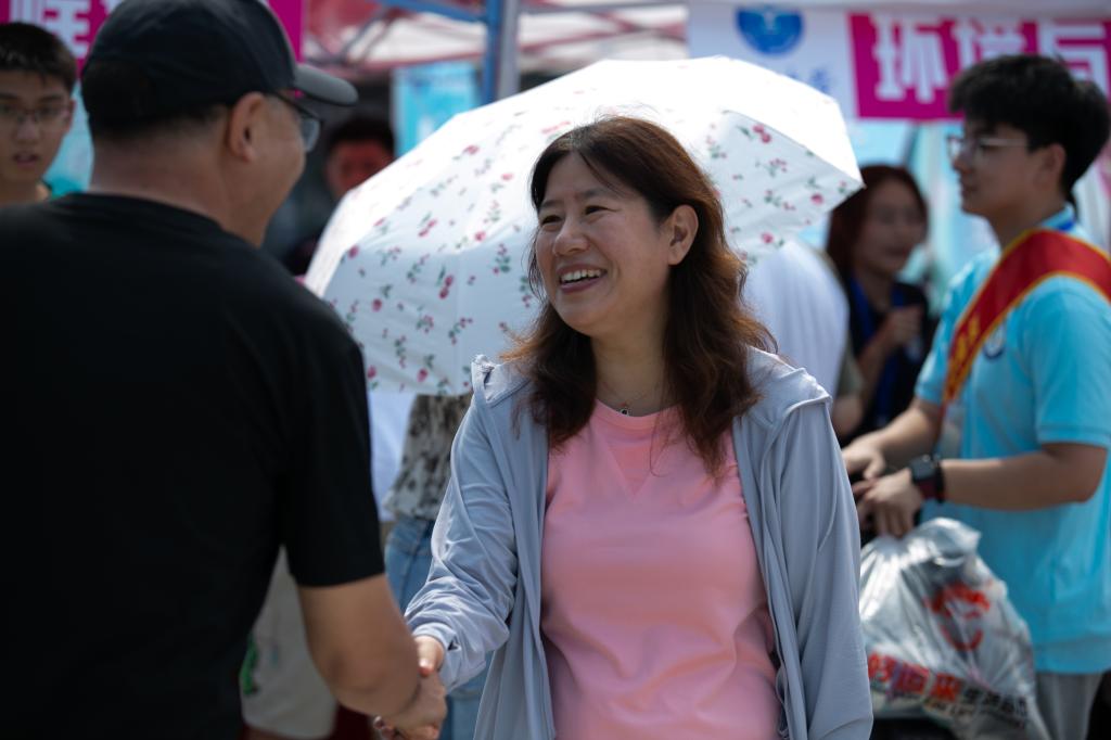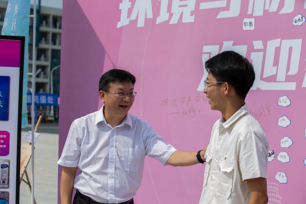 学院领导、老师们也来到迎新现场,亲切慰问现场的工作人员与志愿者,了解迎新工作进展情况,与新生及家长热切交流,勉励新生尽快适应大学生活。